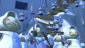 في حرب الآليين الأولى يُستخدم سلاح ضخم ومدمر يُدعى الفيفانتور لذا يخترع العلماء رجل آلي قوي يسمونه زعيم الآليين قادر على تدمير هذا السلاح, لكن هذا الزعيم سيطر على العالم بقوته واستبد فيه لذا قام رجل ذا قبضة حديدية يسمى أيون بقتله في حرب الآليين الثانية.