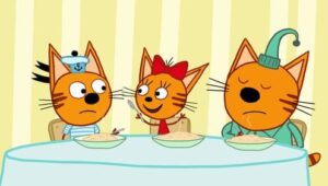 كيدي كاتس : “كوكي” و”بودينغ” و”كاندي” ثلاثة أشقاء من القطط، وأكثر ما يحبّونه هو تناول الحلويات وإطلاق العنان لفضولهم كي يقودهم إلى خوض مغامرات للتعلّم.