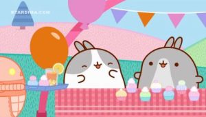 مولانغ : يستكشف أرنب واسع الخيال ذو قلب كبير وكتكوت مرِح مباهج الحياة اليومية في عالمهما المرسوم بالألوان الفاتحة.